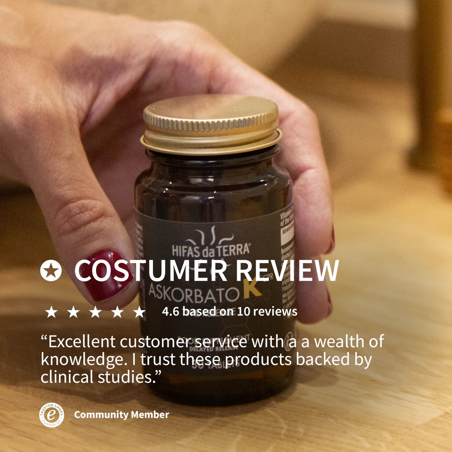Much more than vitamin C, now with more ascorbic acid and plant polyphenols. High-concentration Askorbato K Time Release adds the benefits of Mediterranean polyphenols from olives and grapes. Plus, thanks to its delayed-release technology in gastro-resistant tablets and potassium bicarbonate, it helps with stomach acidity.