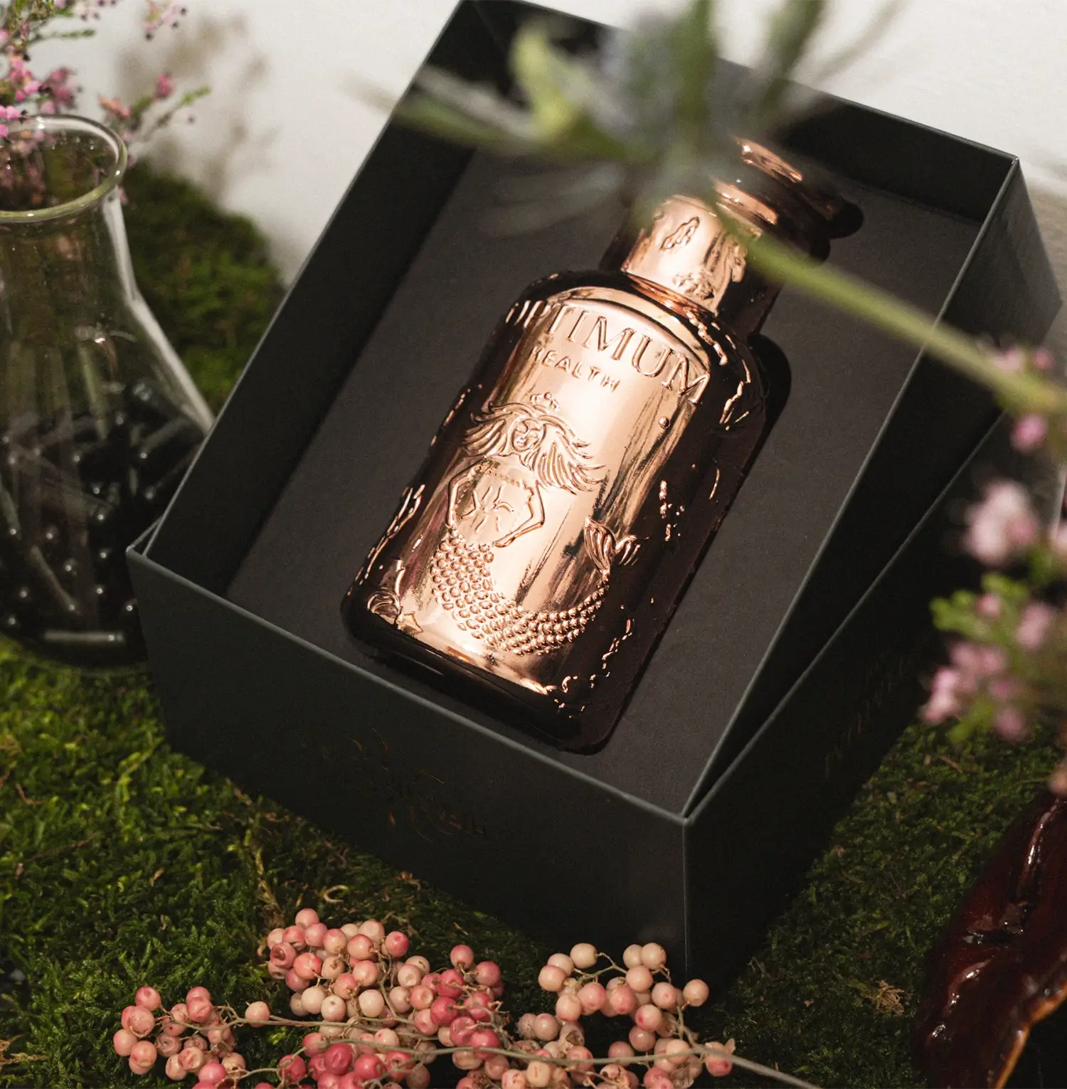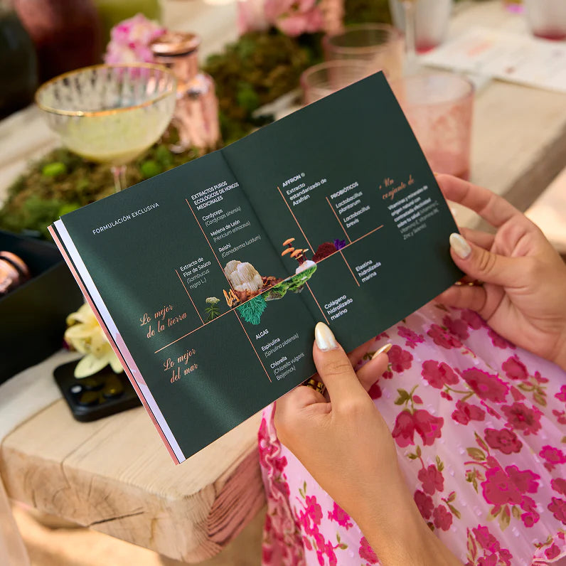 This nutricosmetic combines the best of the land and the sea: organic adaptogens, marine collagen, botanical prebiotics and probiotics.