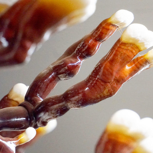 Today we know that this particular form has been linked to its terper content. The range of colours covered by the Reishi goes from intense red to white through yellow. The fruiting body has a woody consistency that gains hardness as time passes.